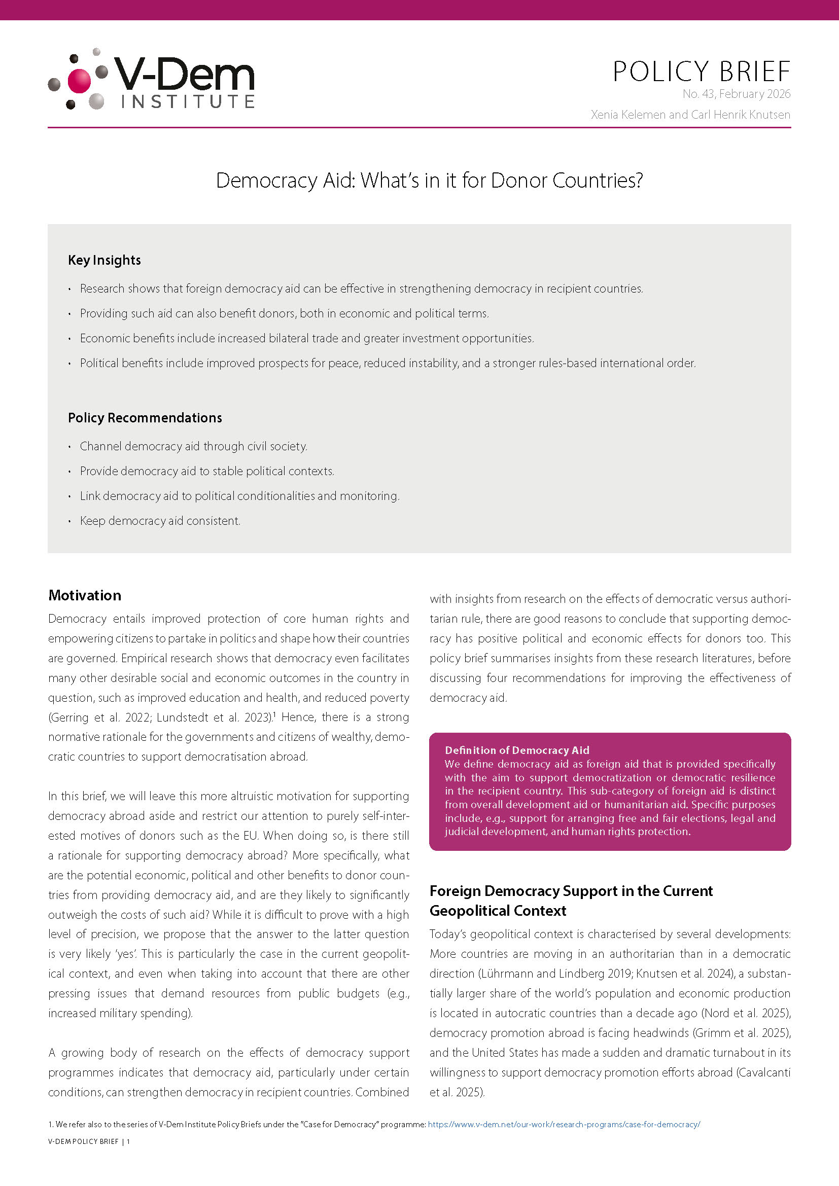 University of Gothenburg, Varieties of Democracy Institute: V-Dem Policy Brief, No. 43, February 2026. |